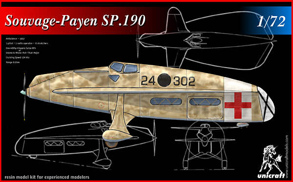 Souvage-Payen SP.190 French 1932 ambulance aircraft project please note, prices subject to change. Refer to AVAILABLE KITS page for current prices. |