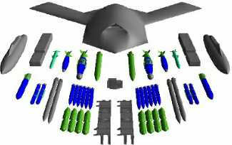 wide range of smaller munitions, such as six 113 kilogram (250 pound) bombs, MALDs, and